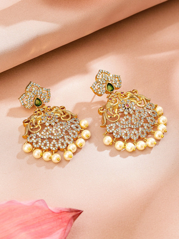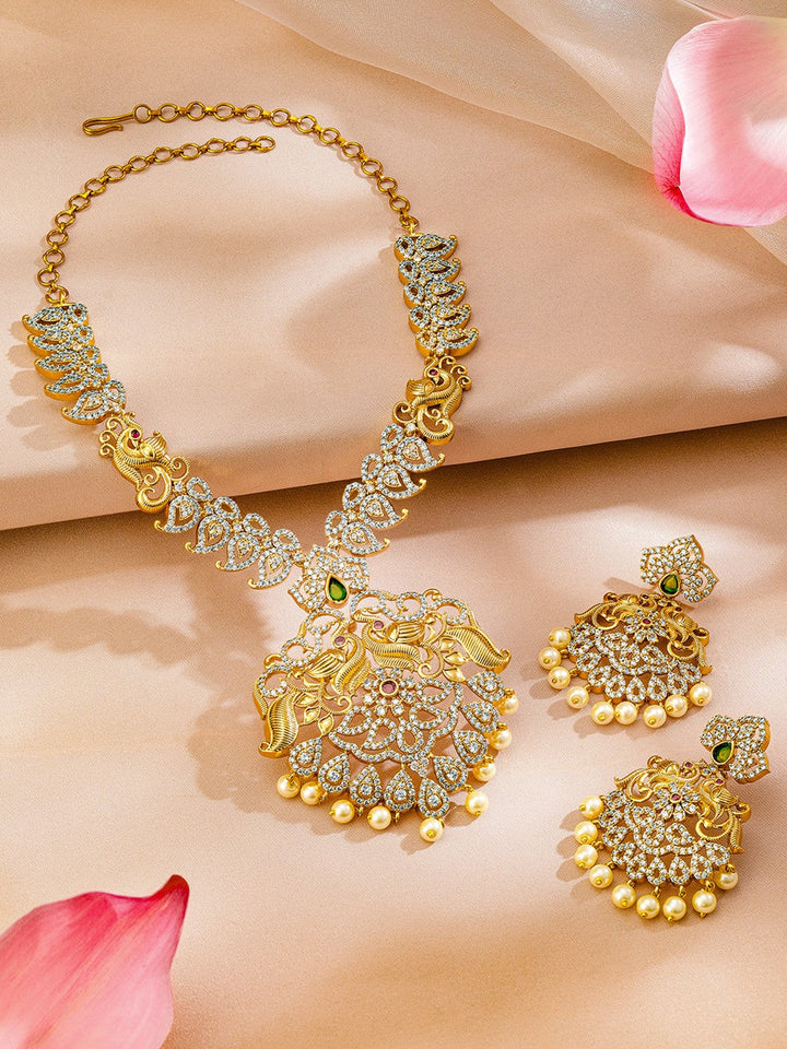 24K Gold Plated Ruby & Emerald Cubic Zirconia Studded Traditional Jewelry Set