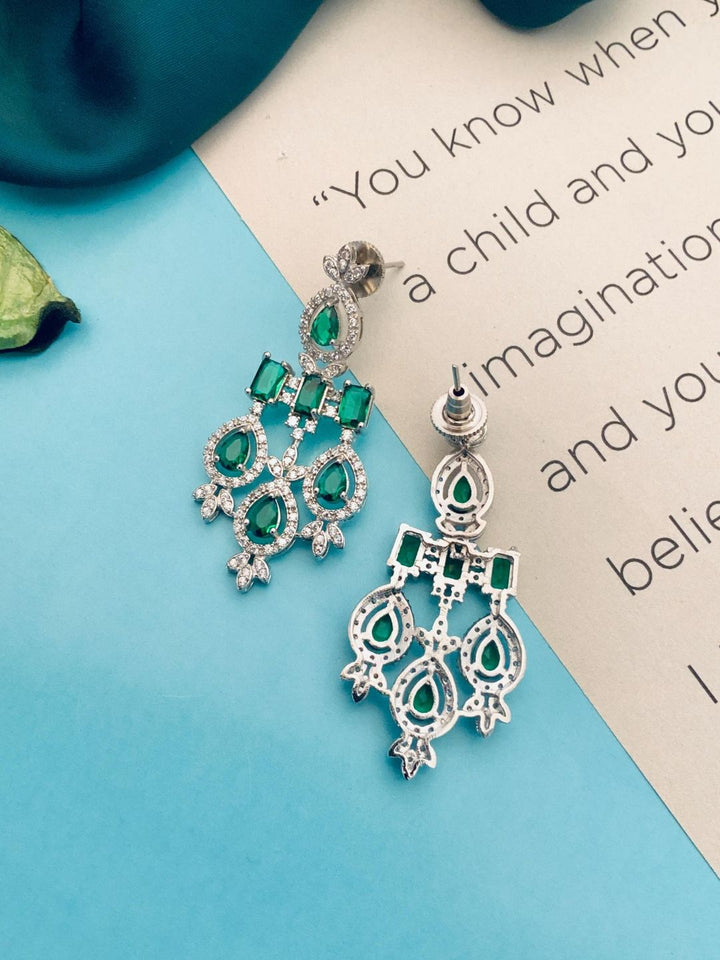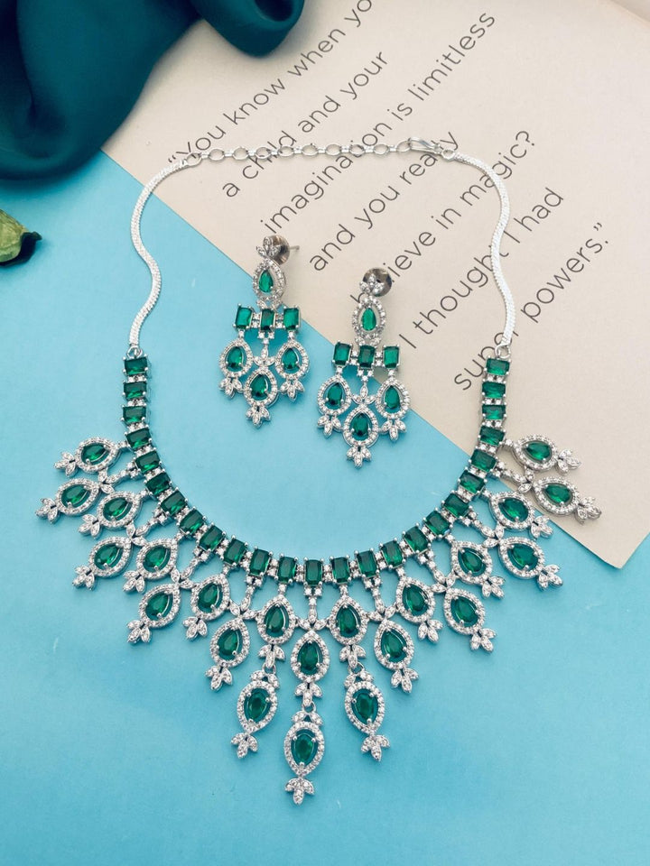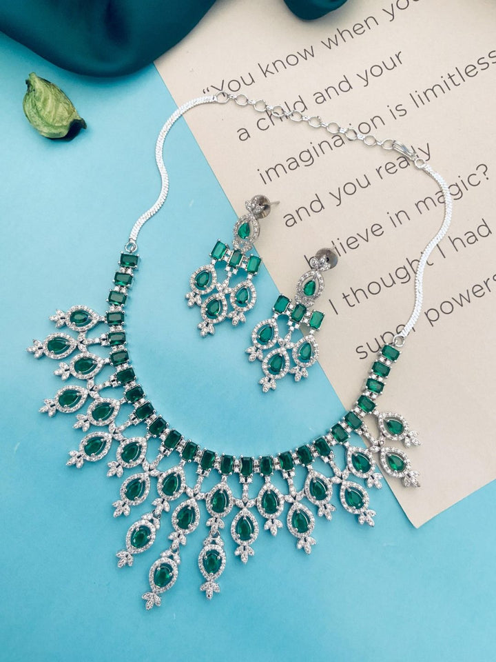 Green Sophisticated American Diamond Silver Plated Jewellery Set
