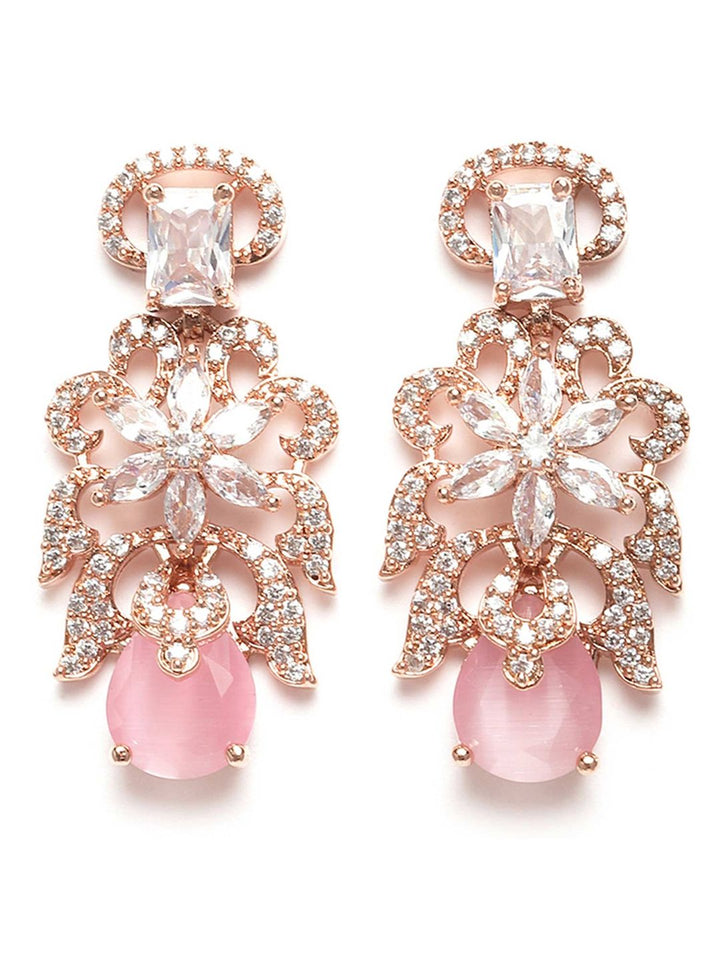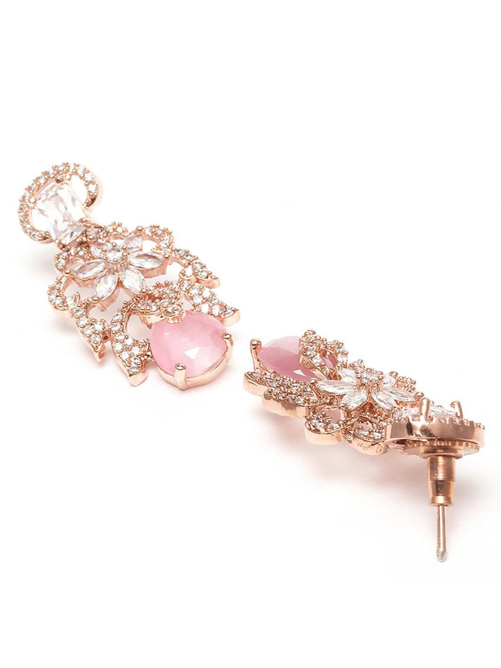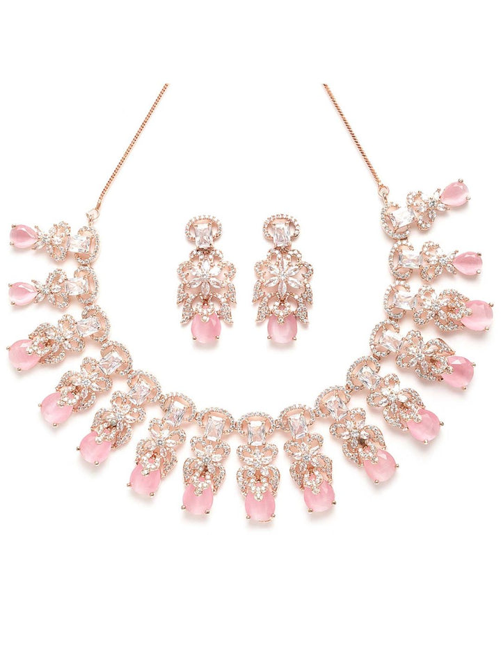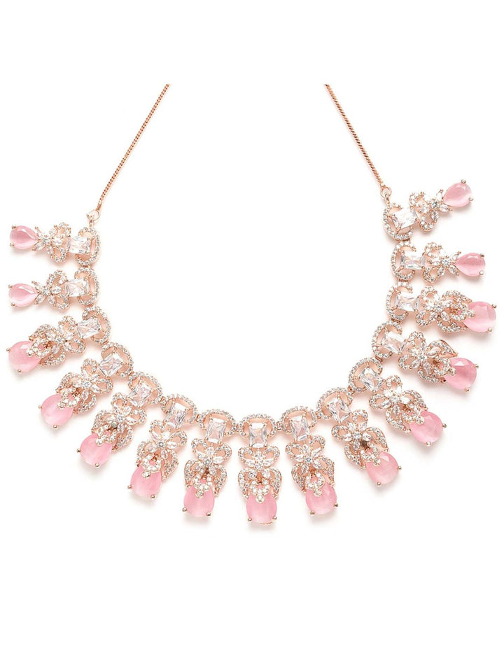 Pink American Diamond Studed Choker Necklace Set (Set of 2)