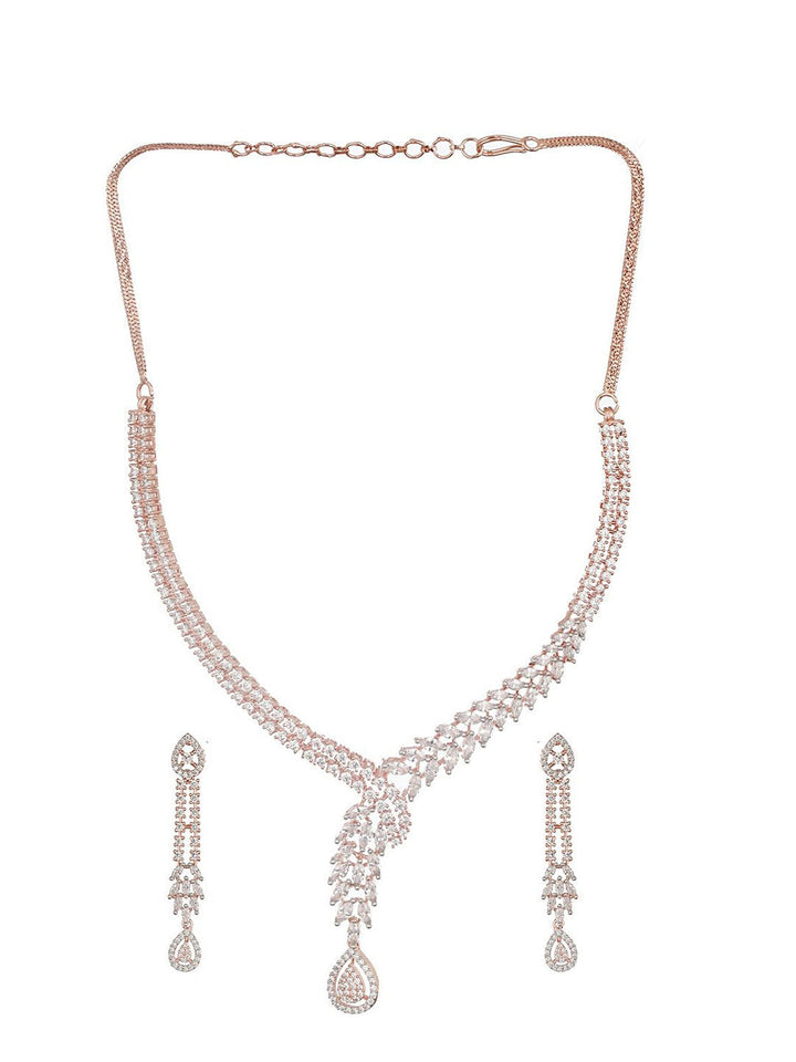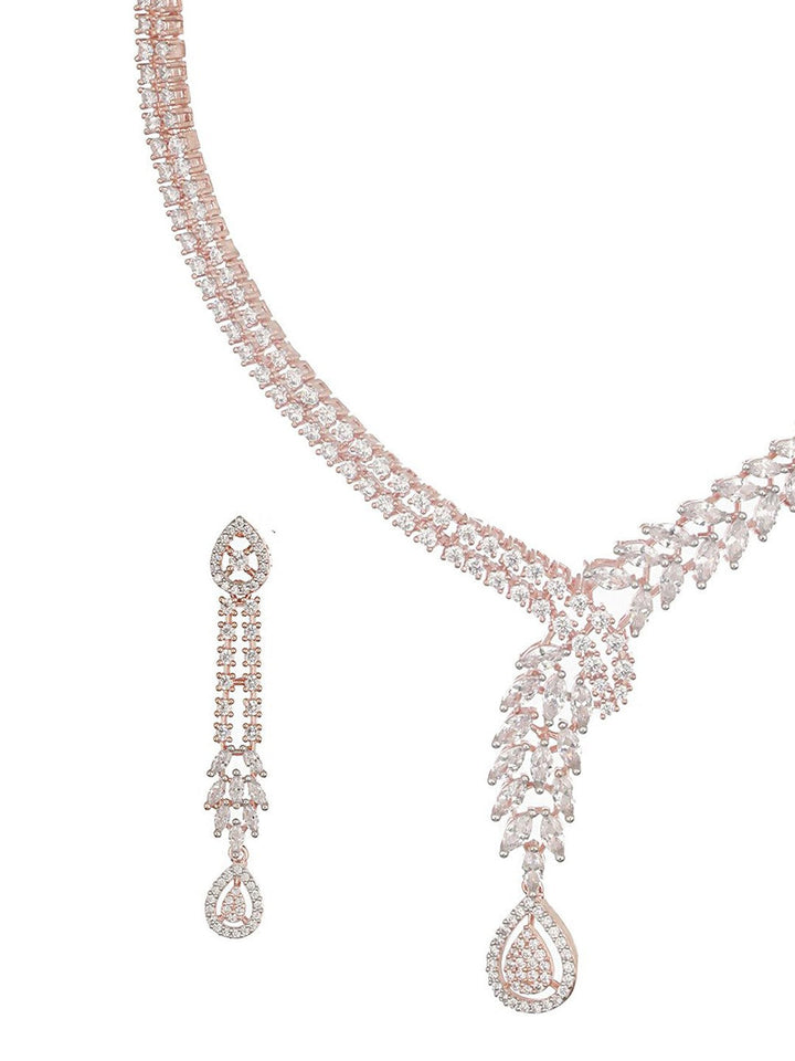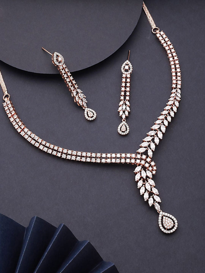 Rose Gold-Plated American Diamond-Studded Jewellery Set