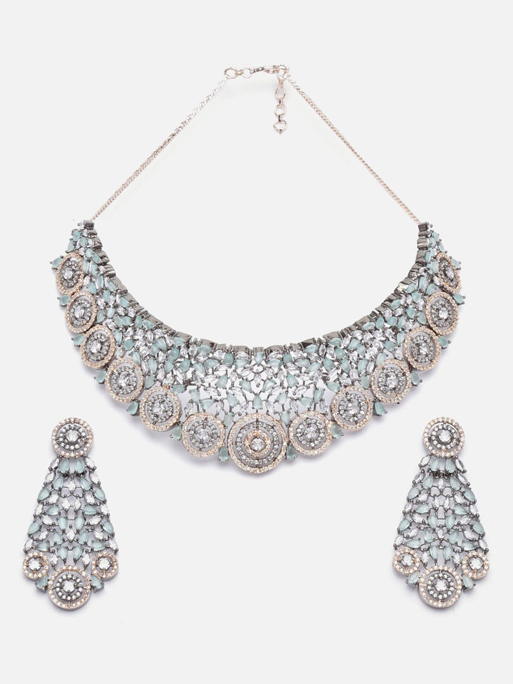 Rose Gold Plated Gunmetal Toned Green Ad Choker Crystal Jewellery