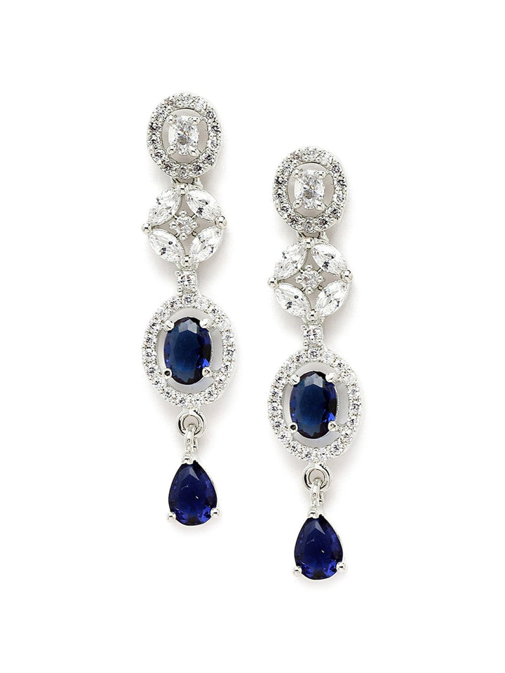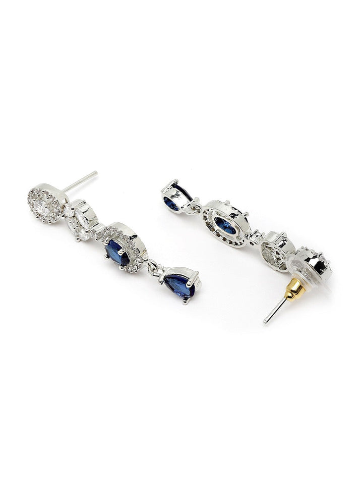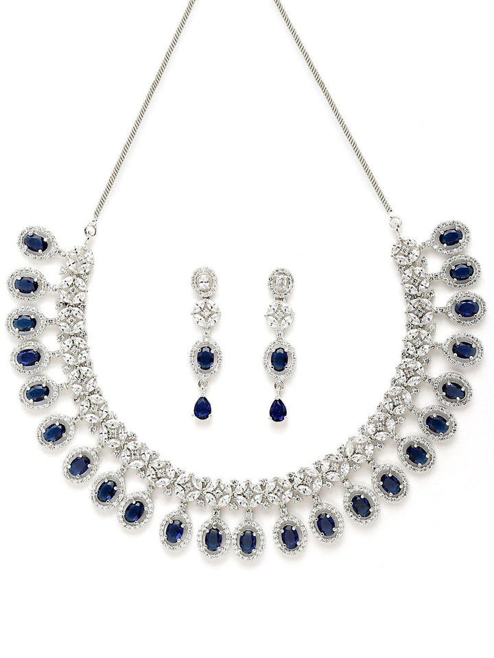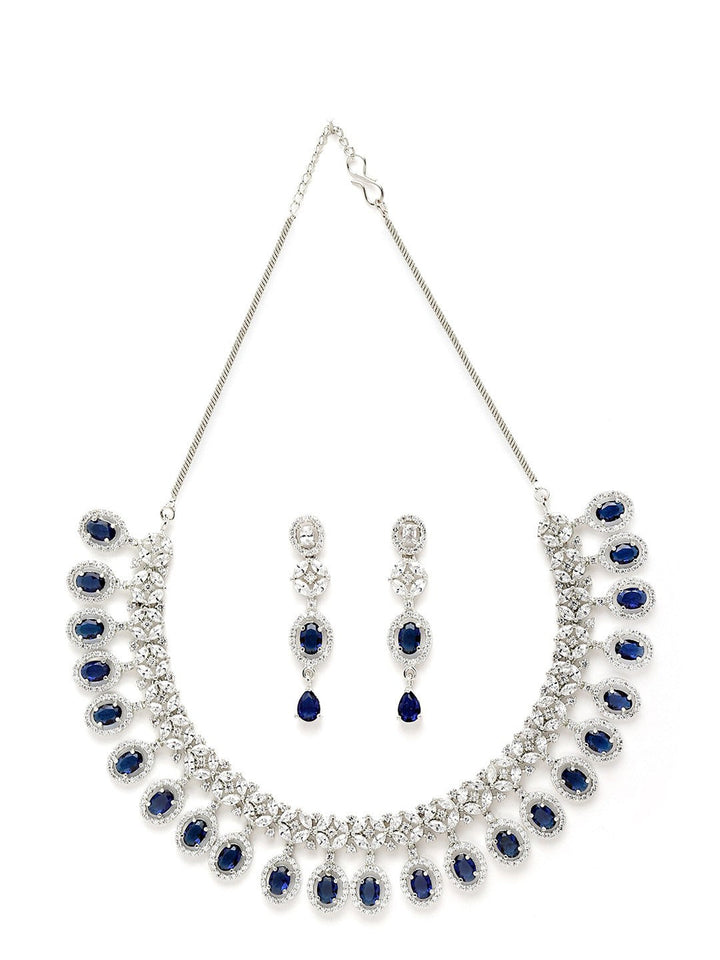 Silver-Plated Blue American Diamond Studded Jewellery Set