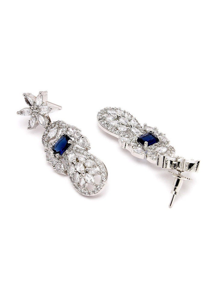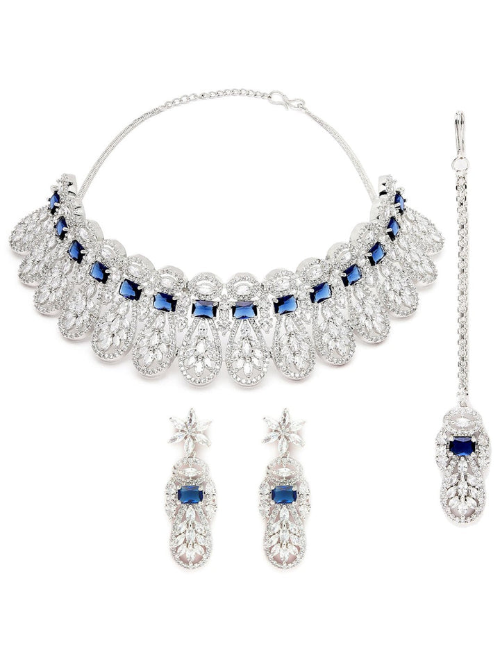 Silver-Plated & Blue American Diamond Studded Jewellery Set