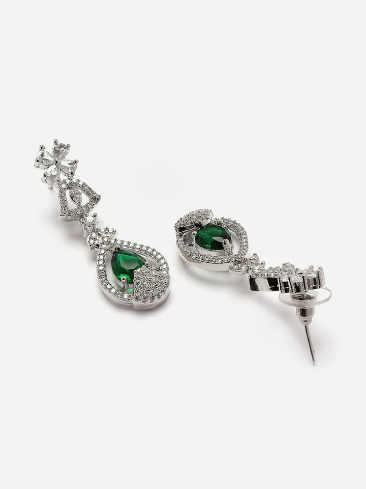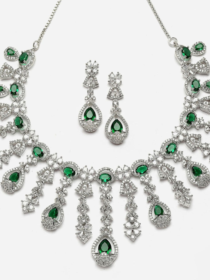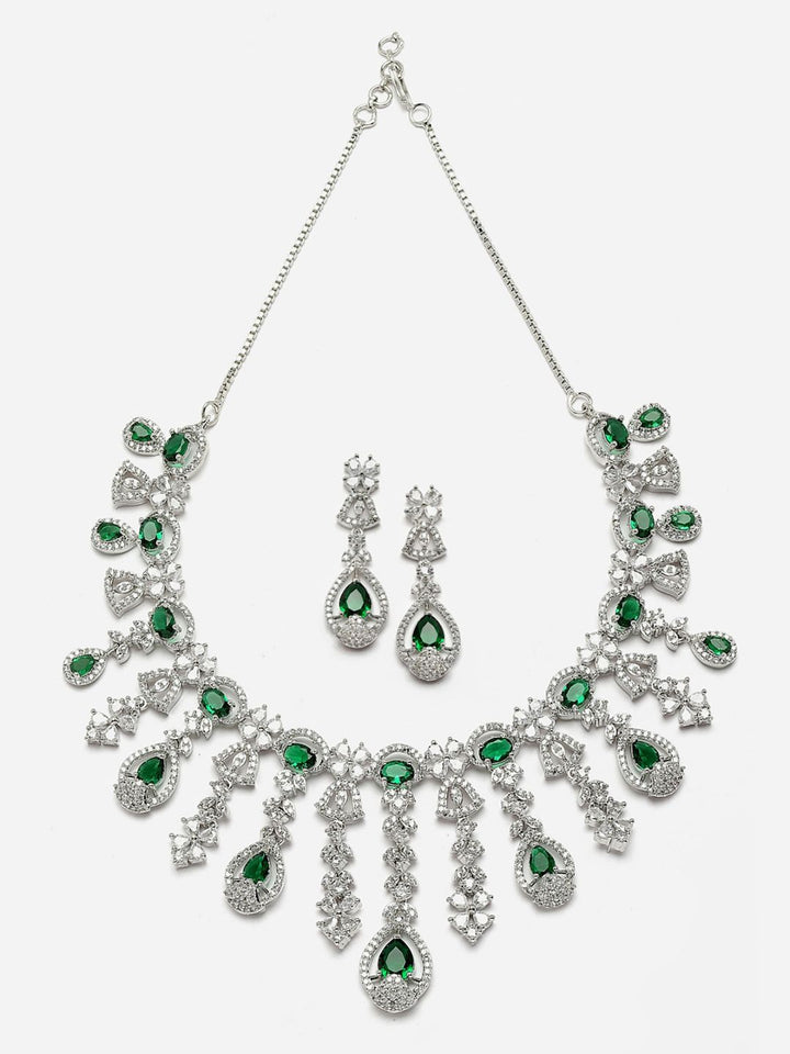 Silver Plated Green Crytal Ad Studded Party Bling Necklace Jewellery