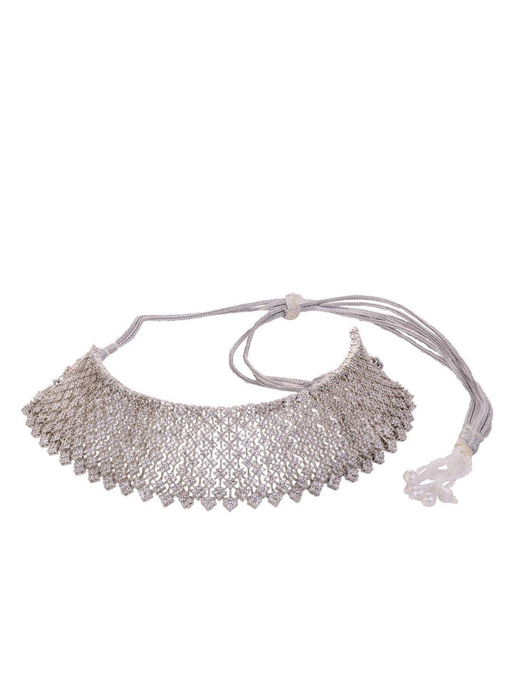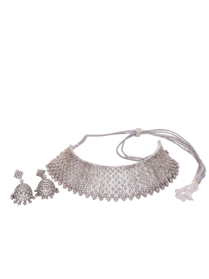 Silver-Plated White AD Choker Jewellery Set with Earrings