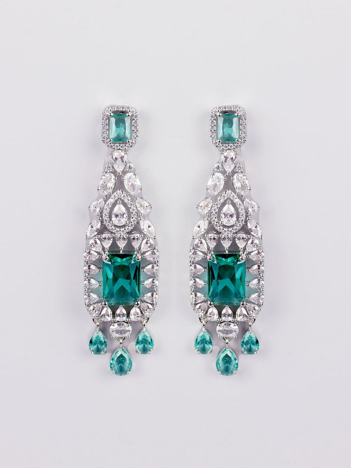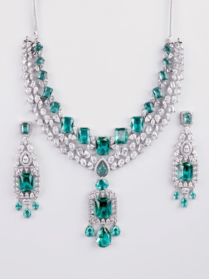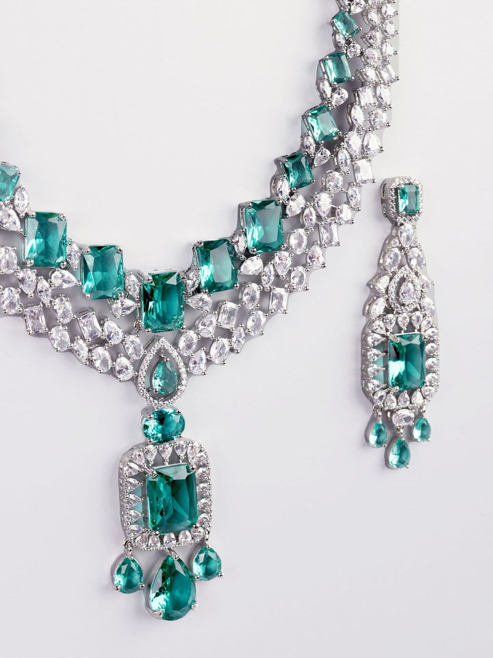 Silver Rhodium Plated White and Green American Diamond Bridal Necklace Set