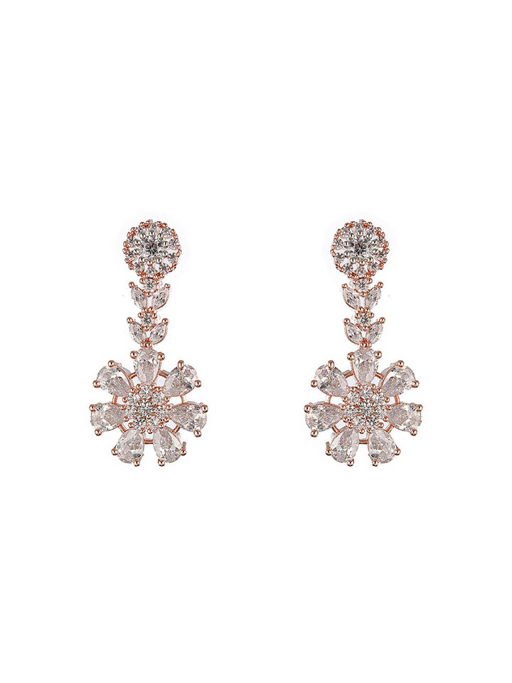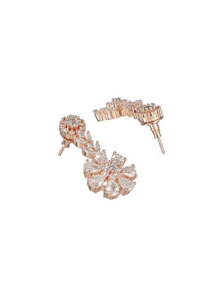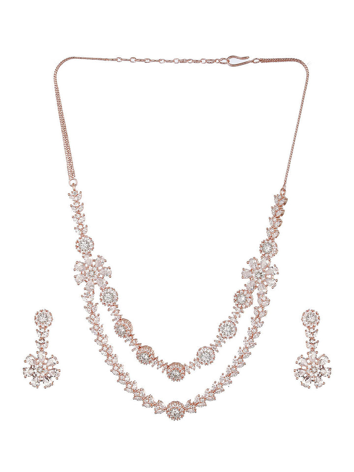 Silver Toned Cz Studded 2 Line Floral Jewellery Set