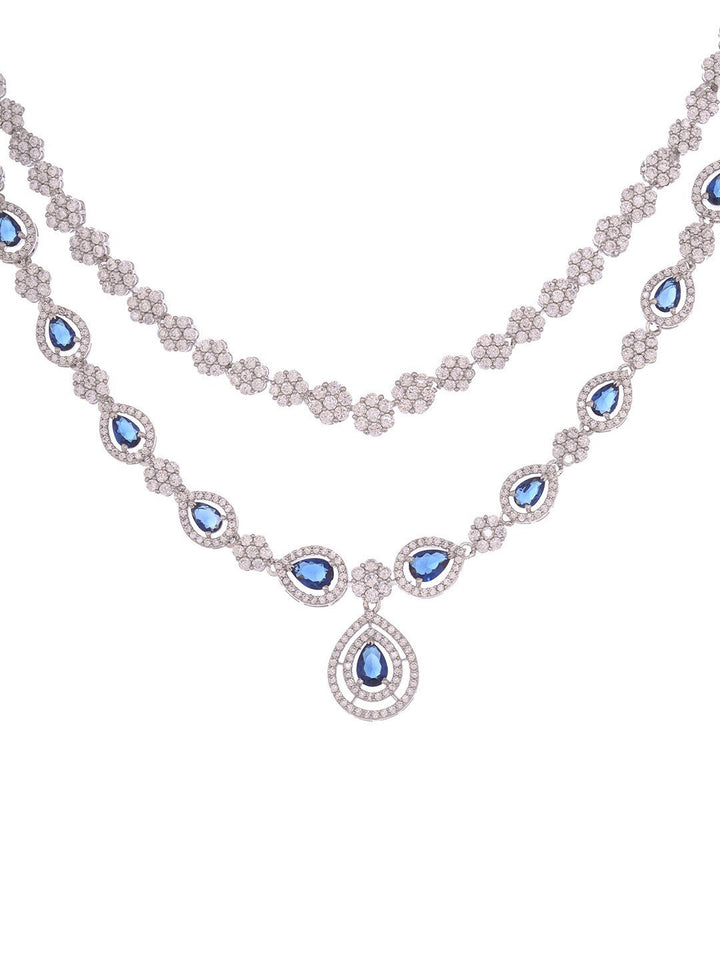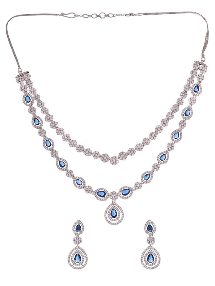 Women Silver-Plated AD-Studded Necklace and Earrings